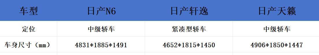 车身尺寸方面,日产N6的定位是一台中级轿车,它有着4831*1885*1491mm的车身尺寸,轴距为2815mm。作为对比,日产轩逸的车长是4652mm,轴距2712mm,日产天籁的尺寸则是4906mm,轴距为2825mm,可以看得出,日产N6的尺寸介于轩逸和天籁之间,其轴距仅比天籁短了10mm,不过,鉴于新车采用了新能源架构打造,这意味着它将有些可以比肩天籁的后排乘坐空间。
